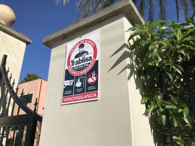 Our dissuasive warning sign announces the presence of a Trablisa alarm system with 24/7 CCTV recording, operating all year round. Recording and identification of intruders in order to supply images to the police. Internal inspection of your property in the event of an alarm being triggered. Anti-blocking technology designed to help us protect your home from any sabotage attempt, with continuous signal transmission to the Trablisa Alarm Reception Centre via our own alternative lines of communication.