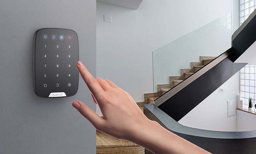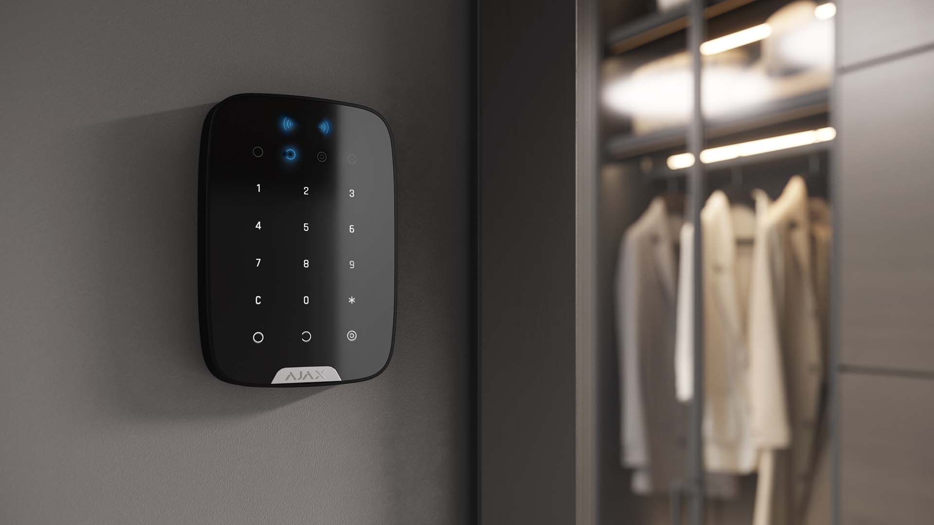 El teclado inalámbrico le permitirá crear un código de una longitud entre 4 y 6 dígitos, que se convertirá en su clave de acceso al sistema de seguridad. Una vez introducido este código, deberá seleccionar qué acción desea realizar en el panel superior del teclado. Gracias al protocolo de seguridad Jeweller, el teclado inalámbrico presenta un rango de comunicación de hasta 1.700 metros sin obstáculos.